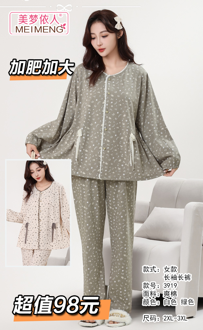 美梦依人长袖女套装加肥3919