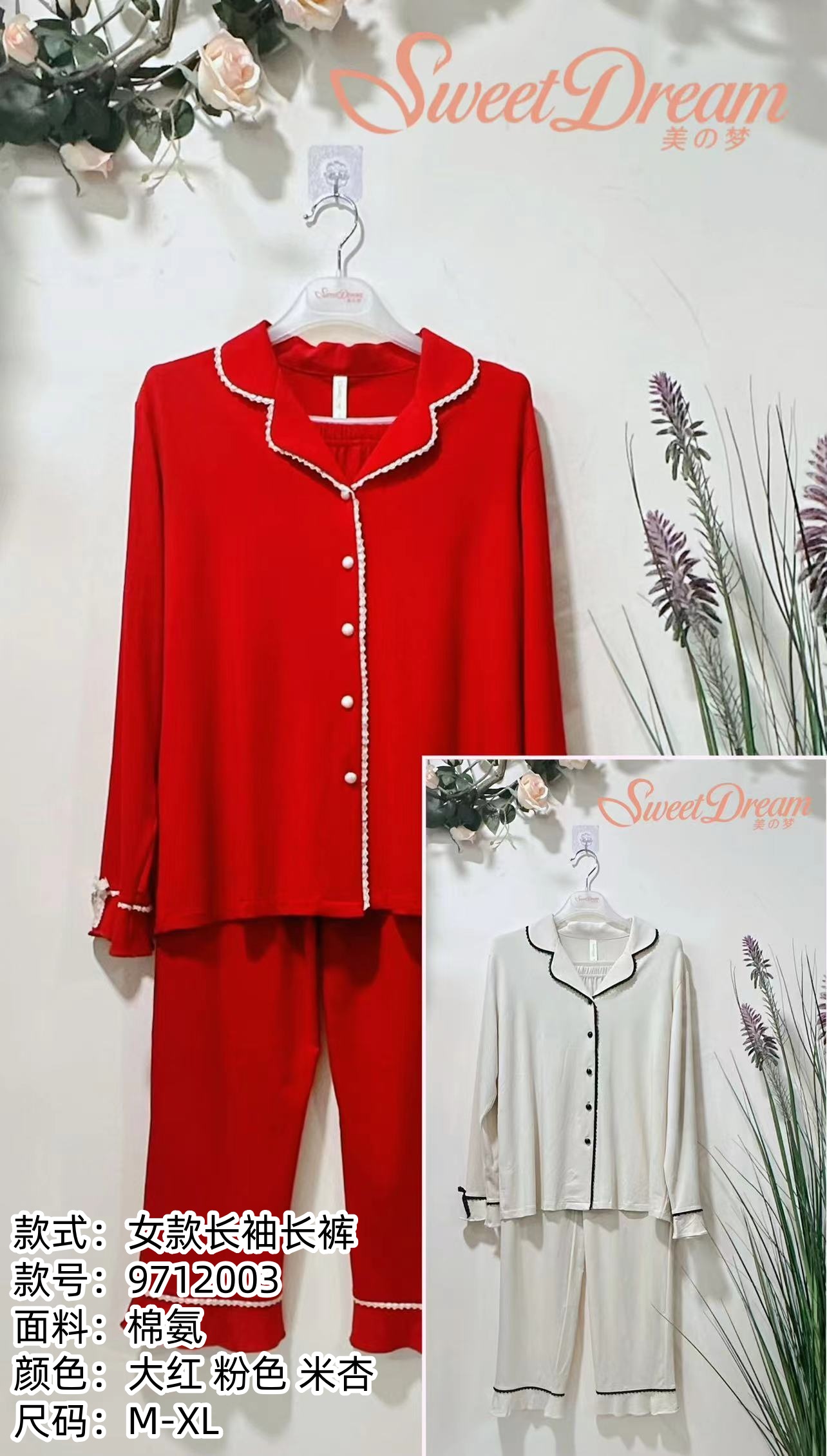 美之梦棉氨长袖女套装9712003