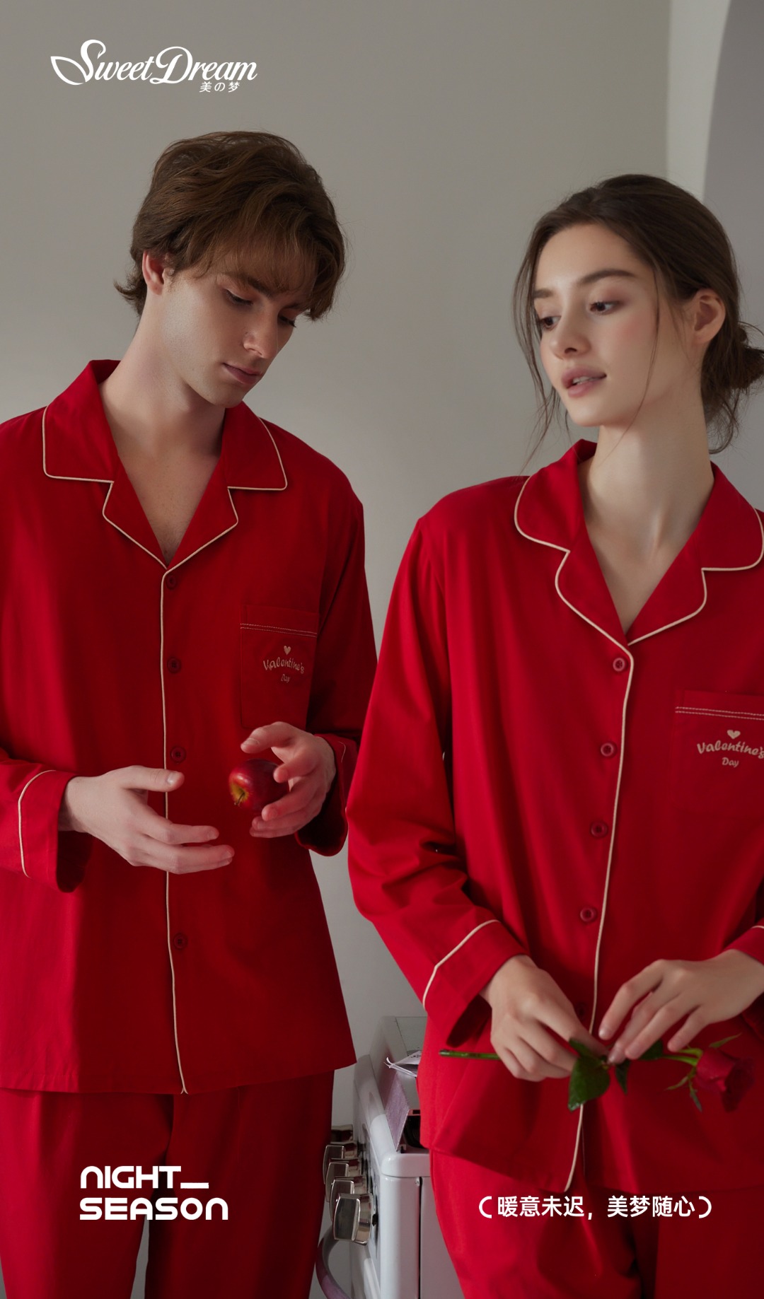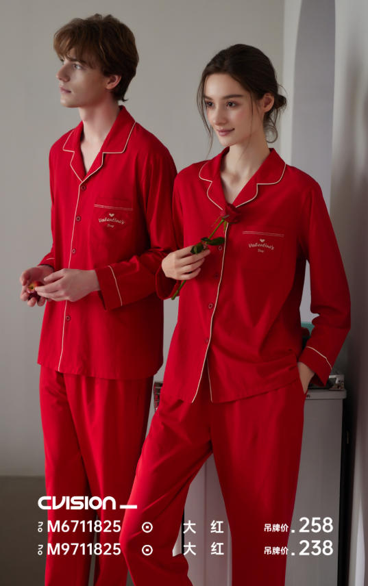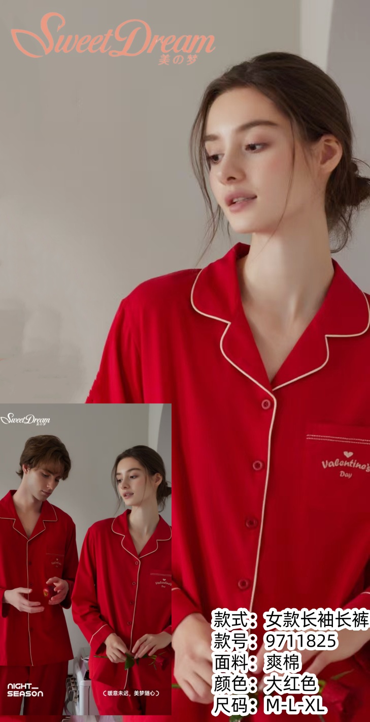 美之梦棉氨情侣大红女套装9711825