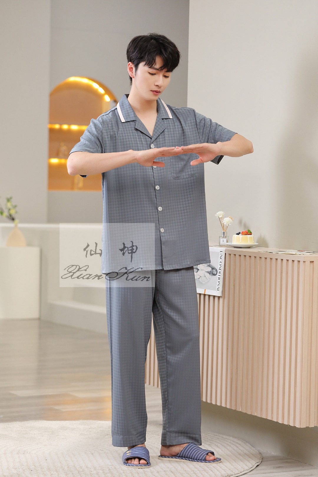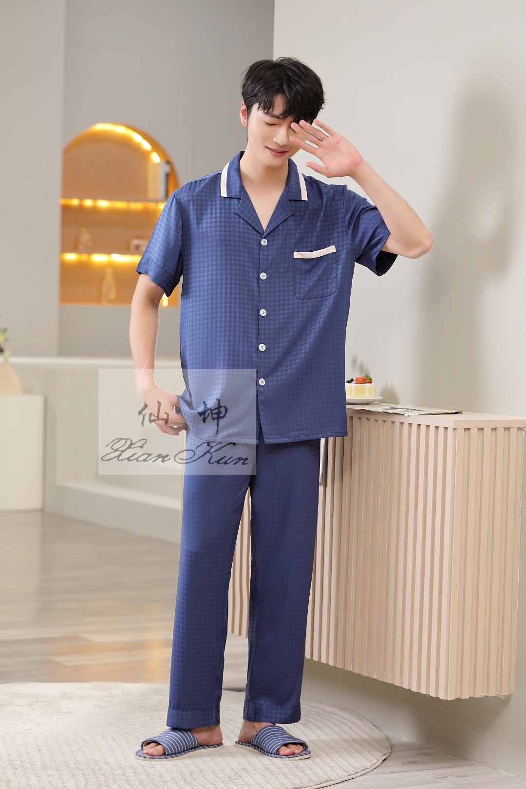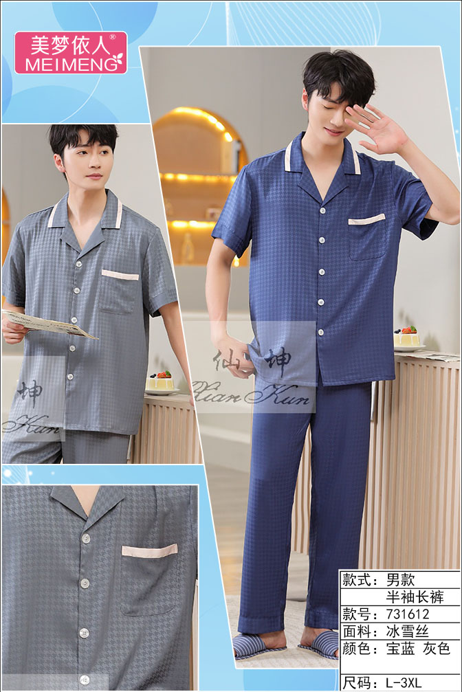 美梦依人冰雪丝男款半袖长裤731612